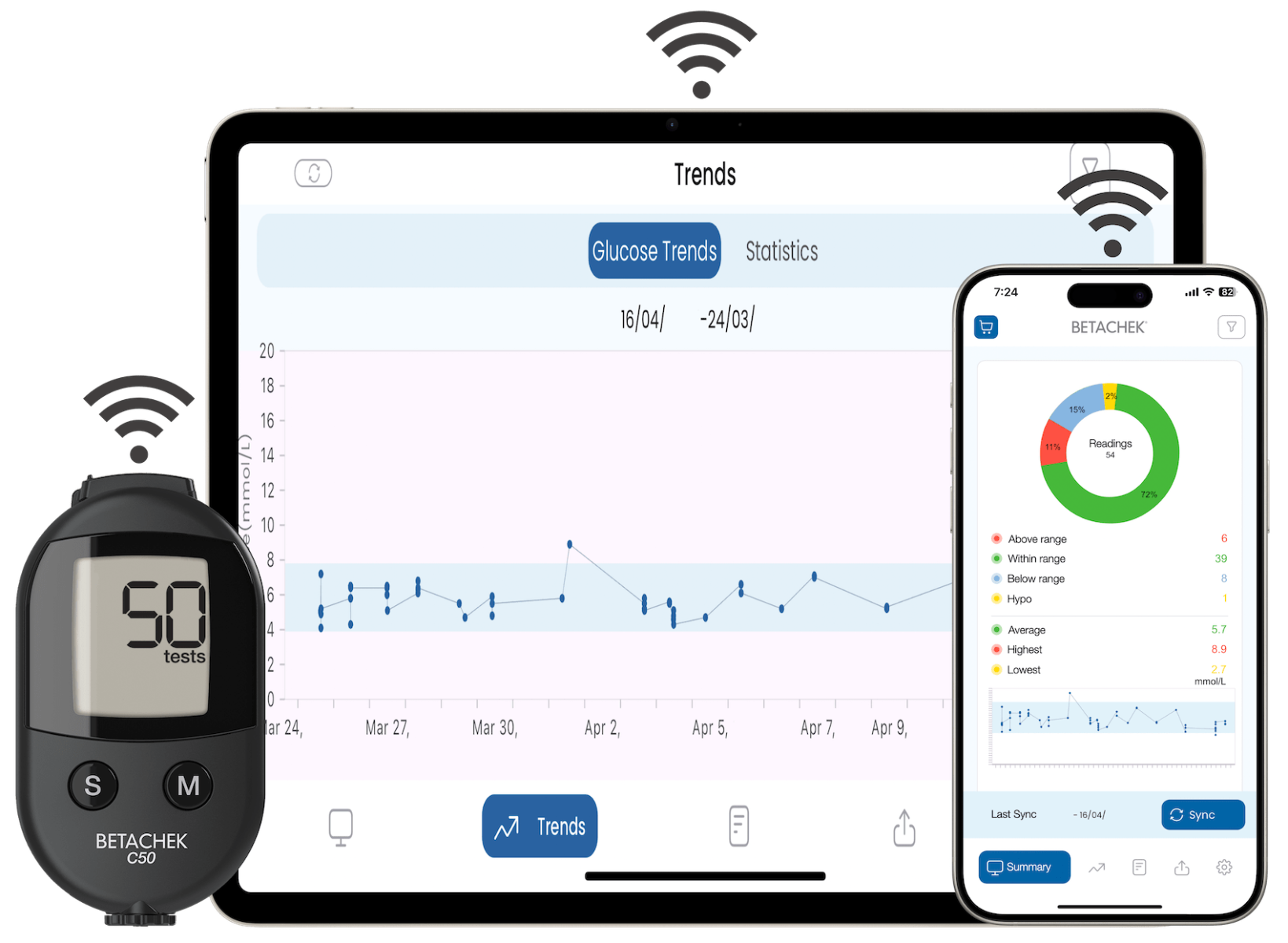 BETACHEK® C50 results can be automatically transmitted to your Apple or Android device wirelessly making it easy to view, save and manage your health data. BETACHEK® C50 has the latest wireless technology - no need for adaptors or cables.