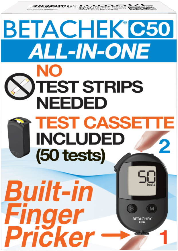 Betachek C50 test cassettes are also available through the NHS with a doctors prescription, if you are eligible for test strips. PIP Code: 4171740